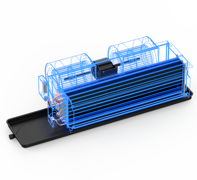 風機盤管是由小型風機、電動機和盤管(空氣換熱器)等組成的空調系統末端裝置之一。 盤管管內流過冷凍水或熱水時與管外空氣換熱,使空氣被冷卻,除濕或加熱來調節室內的空氣參數。它是常用的供冷、供熱末端裝置。
